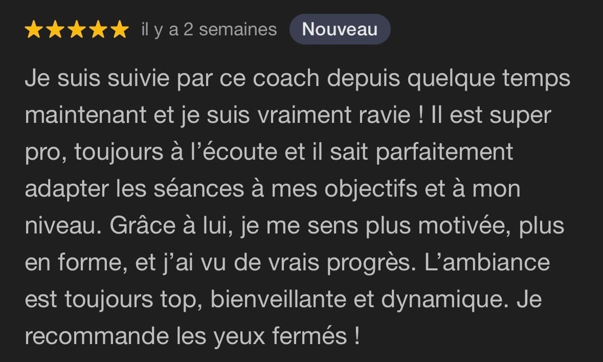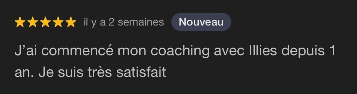 C’est justement là que j’interviens. Tu ne seras pas seul(e) : entre le suivi individuel, les bilans réguliers et le groupe WhatsApp motivant, je serai à tes côtés pour t'aider à rester engagé(e) même dans les moments de doute. Mon but est que tu progresses pas à pas, sans pression extrême.